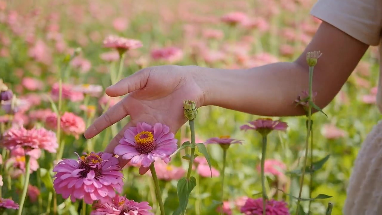 单手触摸着的花朵