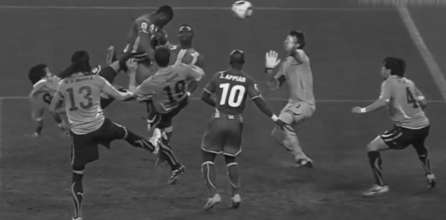 2010年世界杯1/4决赛,加纳vs乌拉圭第120分钟20秒,两队战成1比1,苏亚雷斯用手挡出了加纳的必进aaa。之后苏亚雷斯红牌罚下,加纳获得点球,吉安的点球打在了横梁上,两队进入点球大战,最终乌拉圭拿下比赛。12年后仇人相见:苏亚雷斯再遇加纳收起