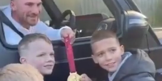 aaa有布莱顿小球迷训练场蹲点合影,麦卡利斯特从背包里直接找出“随身携带”的世界杯奖牌和他们大方合影收起