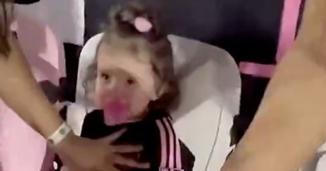 梅西任意球飞上看台,小朋友被吓哭