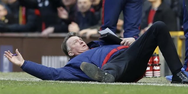 那年今日,范加尔为裁判表演了标准的跳水动作