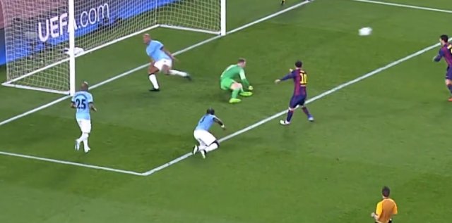 曼城球员和裁判争论,萨拉赫在旁边轻松的玩颠球,随后点球精准命中