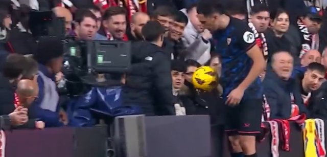 西甲巴列卡诺1比2塞维利亚比赛中,奥坎波斯在发边线球时遭到场边主队球迷流氓动作骚扰,塞维利亚俱乐部已经发声明谴责巴列卡诺球迷对奥坎波斯的流氓动作收起