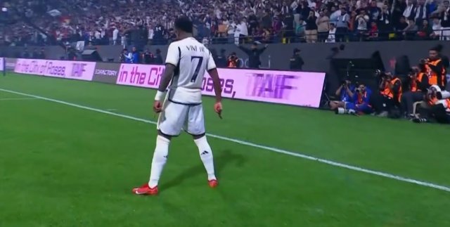正在进行的西班牙超级杯,贝林厄姆开场7分钟送助攻,威尼修斯进球后模仿C罗庆祝收起