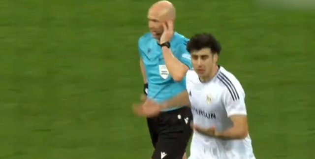 安东尼·泰勒昨晚执法勒沃库森VS卡拉巴克,本来他给卡队球员一张黄牌,看完VAR回来后,卡队球员准备跟他击掌庆祝黄牌取消,结果泰勒给换了一张红牌收起