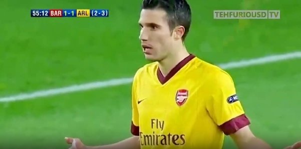 2010-11欧冠16强,巴萨vs阿森纳第二回合,当时效力于阿森纳的荷兰前锋范佩西在裁判吹哨后射门,被2黄变1红罚下,随后巴萨连进2球逆转比分收起