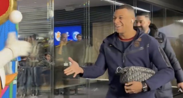 姆巴佩和皇家社会吉祥物握手收起