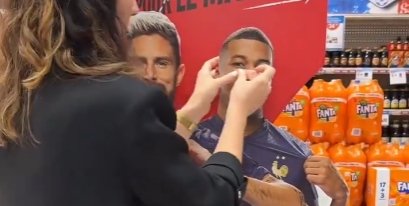 姆巴佩在鼻骨骨折后首次重返训练场,鼻子上缠了绷带,球迷为姆巴佩的人形立牌打补丁收起