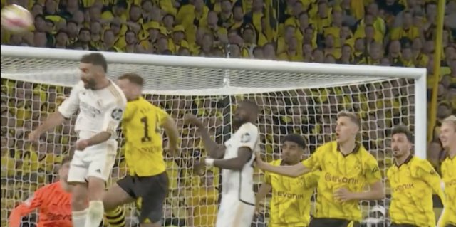 在本赛季欧冠决赛的比赛中,皇马对阵多特蒙德,下半场卡瓦哈尔头球得分收起