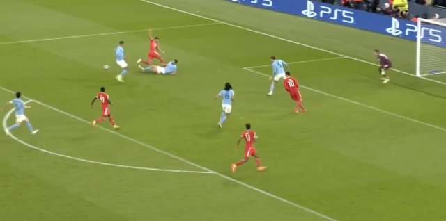 曼城球员和裁判争论,萨拉赫在旁边轻松的玩颠球,随后点球精准命中