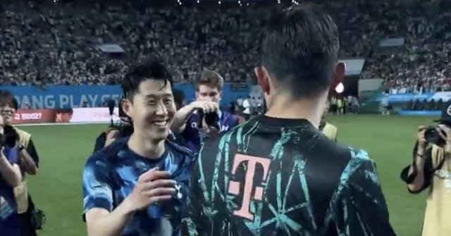 拜仁季前赛战胜热刺后,孙兴慜开玩笑地假装不认识金玟哉收起