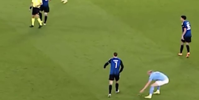 哈兰德捡回裁判掉落的哨子收起