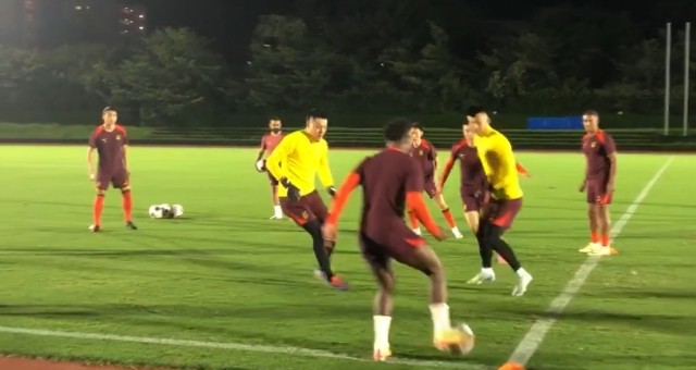 【现场直击】国足抢圈训练 费南多阿兰打配合