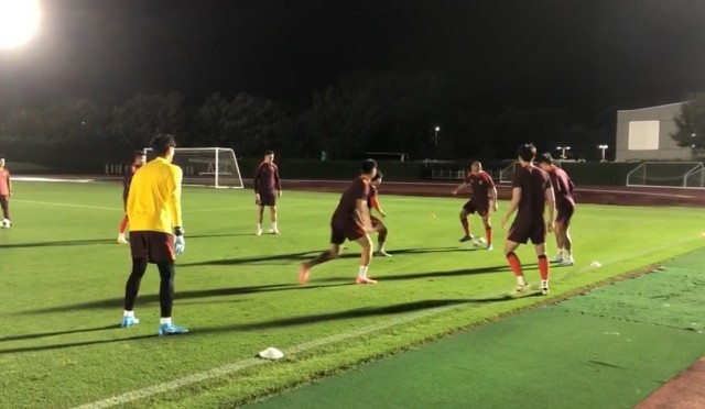 北京时间9月2日,中国男足国家队抵达东京,傍晚便在FC东京主场味之素体育场旁边的训练场开启首练。训练中,国足队员随机分成三个小组进行二抢七的抢圈练习。视频/马德兴收起