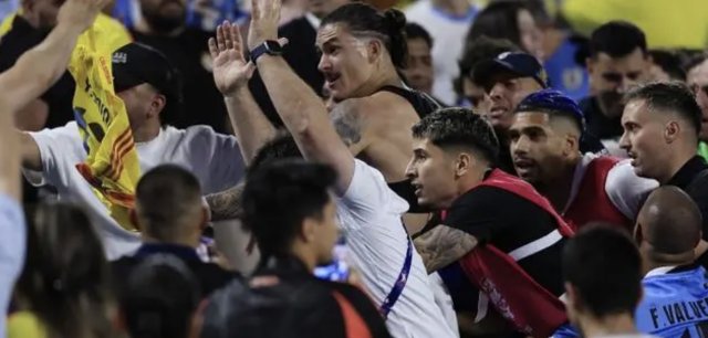 美洲杯半决赛,哥伦比亚1-0淘汰乌拉圭,比赛结束后,乌拉圭球员赛后和哥伦比亚球迷爆发冲突,努涅斯冲上看台与球迷互殴收起