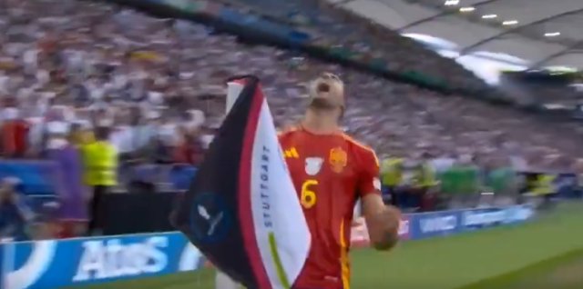 米凯尔·梅里诺在7月5日晚的斯图加特球场上演了一幕温馨而传奇的瞬间,他的进球不仅帮助西班牙国家队淘汰东道主,挺进欧洲杯半决赛,还复制了其父33年前在同一场地的庆祝动作收起
