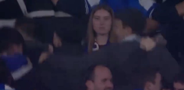 皇家社会进球领先时,一位巴萨球迷被狂欢的皇社球迷包围收起