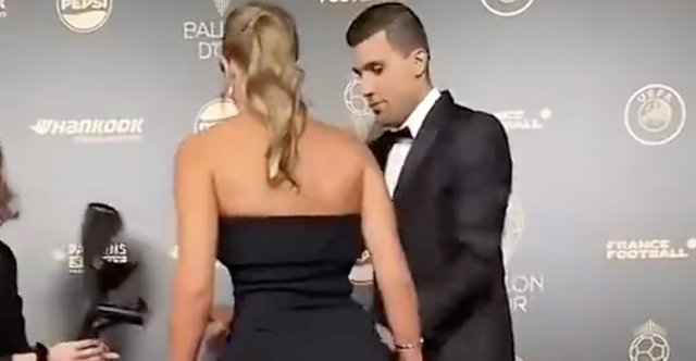 罗德里在红毯拍照环节特地把拐杖拿开 ​,保持帅气收起