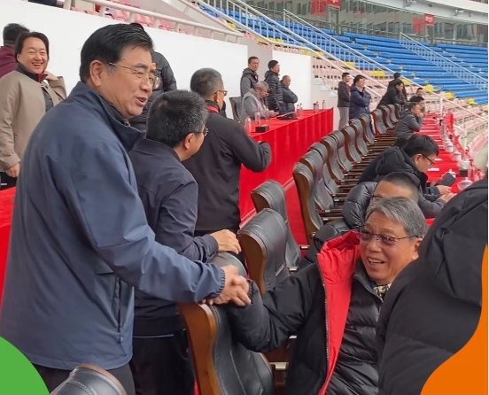 男足小组赛A组最后一轮,山东男足对阵上海男足,中国足协主席宋凯也出现在了观众席,并与老帅徐根宝握手寒暄。收起