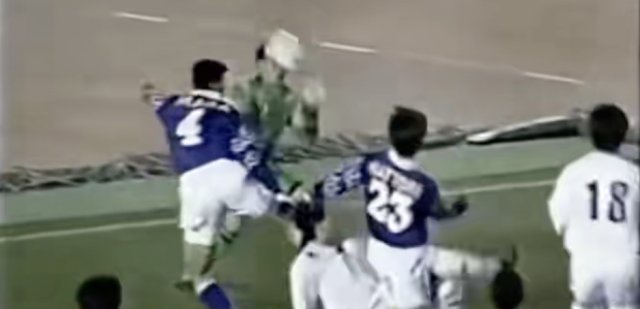 98年戴拿斯杯,国足黎兵倒钩攻破日本队球门收起
