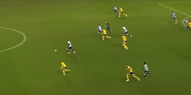 英冠第25轮,谢周三球员乔希·温达斯在本方半场起脚,超远距离吊射破门收起