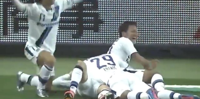 大阪球员吊射自家球门中柱,门将大脚反击绝杀