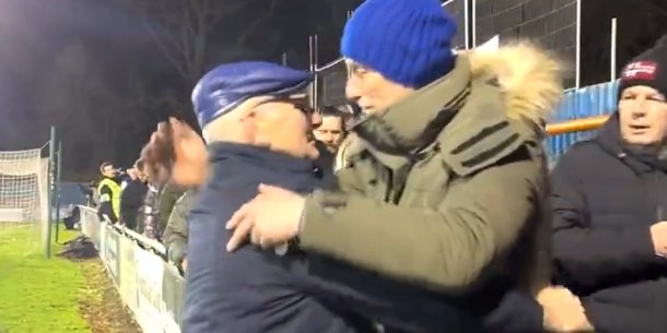 英格兰第五级别球队奥尔德姆竞技队的老板Frank Rothwell与每一位来现场观看比赛的球迷握手,祝愿他们圣诞快乐收起