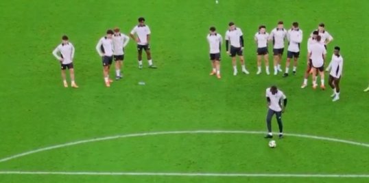 吕迪格训练射门,进球后高兴地表演前空翻收起