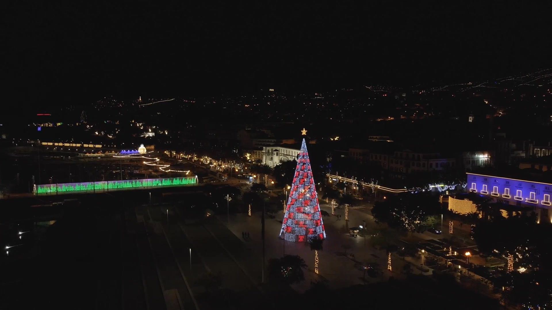 夜景下的松树