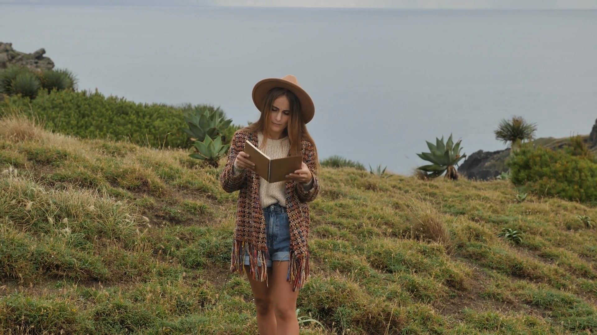 草地上读书的女孩