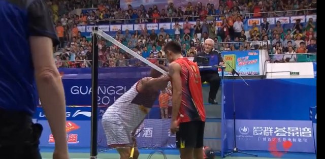 aaa2013年广州世锦赛,男单决赛林丹VS李宗伟,双方上演一场荡气回肠的比赛,第三局李宗伟受伤退赛,林丹绕过球网关切询问李宗伟伤势收起