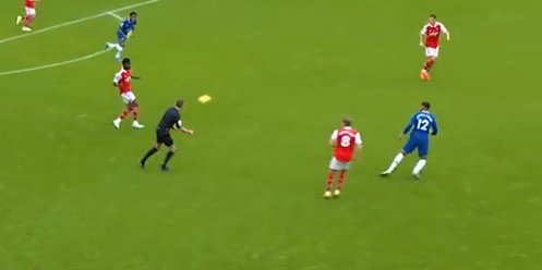 阿森纳获得角球时,定位球教练乔弗在场边激情指挥,阿尔特塔默默站在身后
