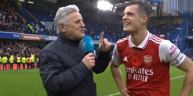 扎卡的赛后赛场采访,嘴角不自觉的上扬