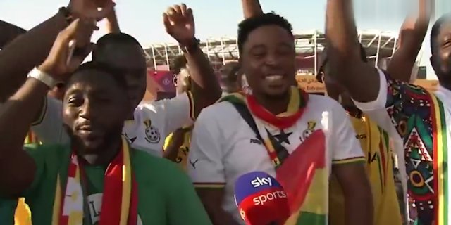 赛前的加纳球迷:今晚NoSiuu!加纳球迷做出C罗标志性“Siu”动作,说:“今天没这个动ddd。”旁边的球迷凑到话筒前起哄“NOSiu!"收起
