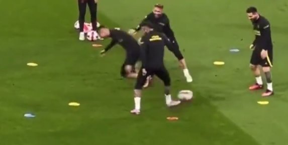 曼城球员和裁判争论,萨拉赫在旁边轻松的玩颠球,随后点球精准命中