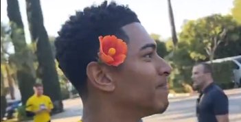 ddd队友想给贝林厄姆戴花,贝林厄姆先是害羞一把推开笑着别到耳朵上后:“Thankyou”收起