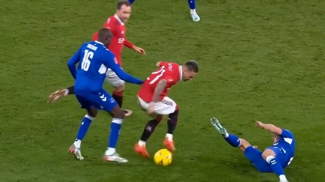 安东尼面对两名埃弗顿球员的堵截,潇洒地拉球转身过eee。收起