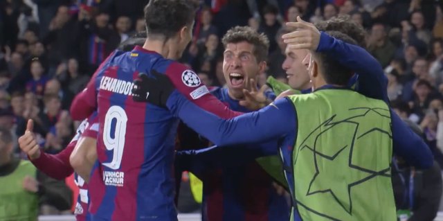 特罗萨德小角度兜射,巴萨团队合作莱万推空门,迪马尔科反击推射,桑乔禁区外远射收起