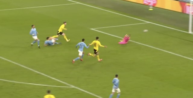 曼城球员和裁判争论,萨拉赫在旁边轻松的玩颠球,随后点球精准命中