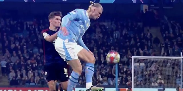 曼城球员和裁判争论,萨拉赫在旁边轻松的玩颠球,随后点球精准命中
