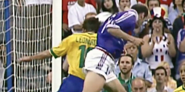 1998年世界杯决赛,东道主法国队对阵夺冠大热门巴西队。罗纳尔多、贝贝托和里瓦尔多哑火,齐达内上下半场均头球破门,佩蒂特奔袭锁定胜局,最终法国3-0击败巴西,在法兰西大球场首次捧起大力神杯收起