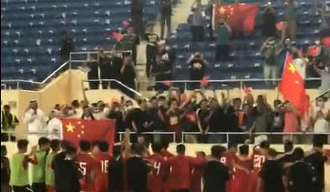 aaa国青出线赛后谢场球迷举国旗高喊中国加油收起
