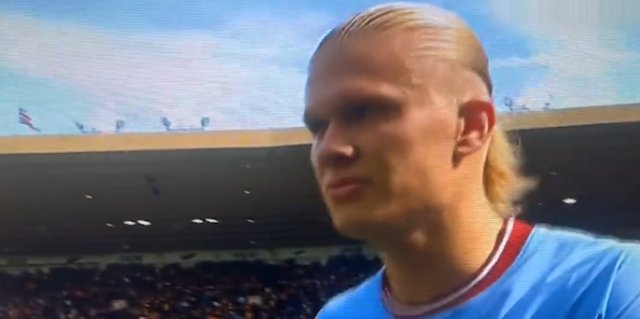 ddd狼队vs曼城半场结束后,摄像师一直跟拍哈兰德,被哈兰德一把推开收起
