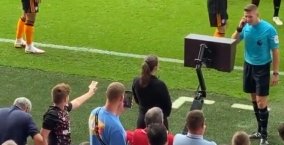 bbb裁判在用VAR查看布伦特福德点球时,小球迷拿着钱试图“贿赂”裁判给主队点球收起