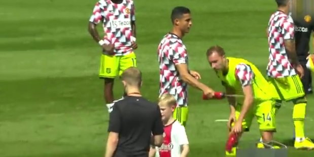 bbb曼联vs南安普顿开场前,C罗一旁热身,偷摸摸朝着曼联名宿费迪南德滋水收起